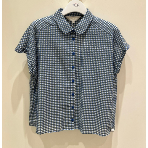 法式袖襯衫,採用純棉透明面料製成,色彩可愛,帶有格紋圖案。