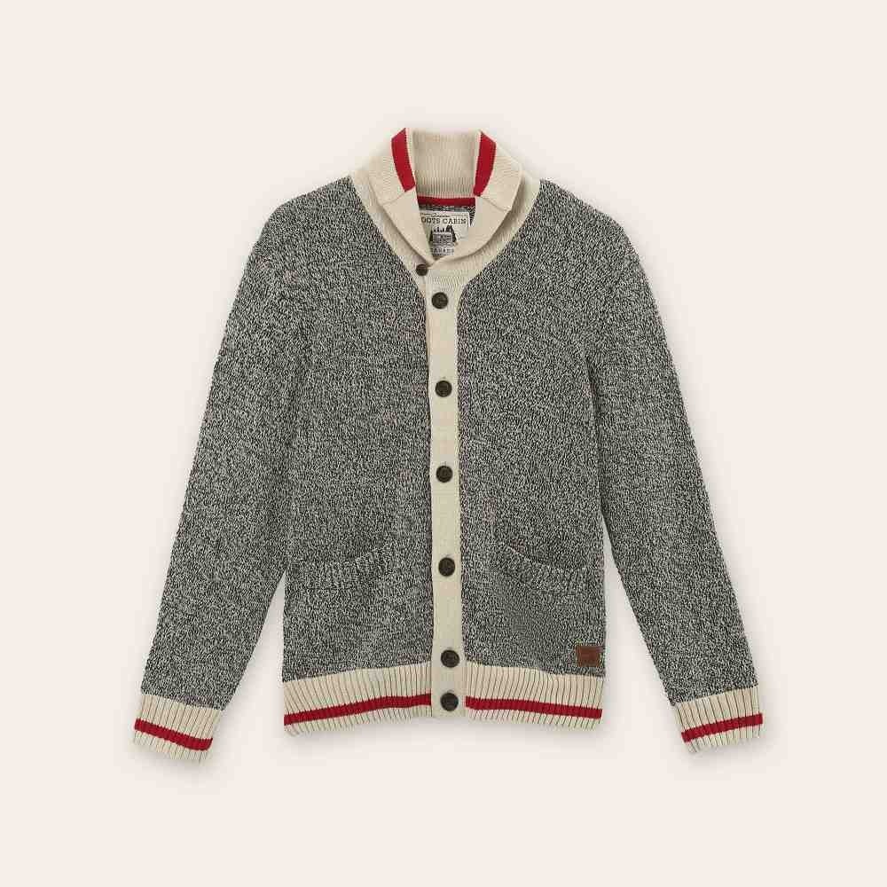 以小木屋經典配色製成得開襟毛衣,可搭配各種日常風格穿搭。