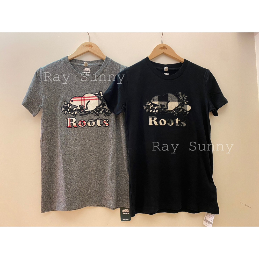 Roots女裝-經典小木屋系列 格紋海狸LOGO短袖T恤