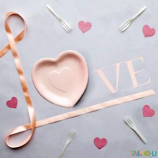 婚禮、晚宴上自助吧的小甜點只能用白色圓形紙盤裝嗎?粉紅色的愛心造型紙盤搭配珍珠白色的法式蛋糕叉,完美融入現場甜蜜氛圍,成為婚禮現場的裝飾品!來試試看這款寶寶粉色愛心盤叉組吧!讓賓客們的眼睛為你的小巧思為之一亮!