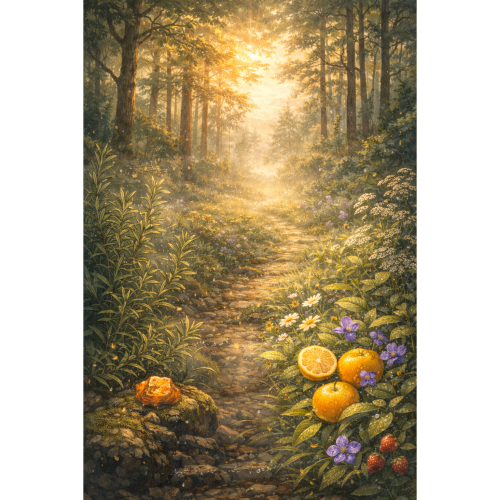日本香橙與羅勒的氣息,如晨間空氣中初綻的光線,清爽且帶著一絲草本的靈動;丁香則如森林的脈搏,低聲跳動,牽引你更深入其境。