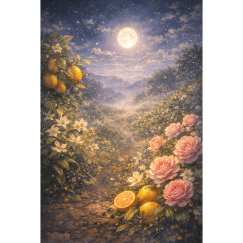 甜檸檬、佛手柑與苦橙開場,是月光下最清透的序曲,如夢初醒,令人屏息。這股柑橘的光亮,輕輕劃過心底,彷彿時間被拉長,只為記住這個瞬間。