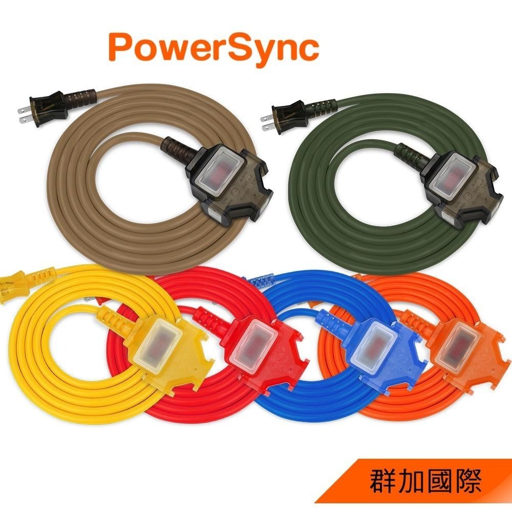 群加 PowerSync台製2P 1擴3插動力線/露營裝備/過載保護/奶茶/軍綠/黃/紅/藍/橘/5m/10m/15m
