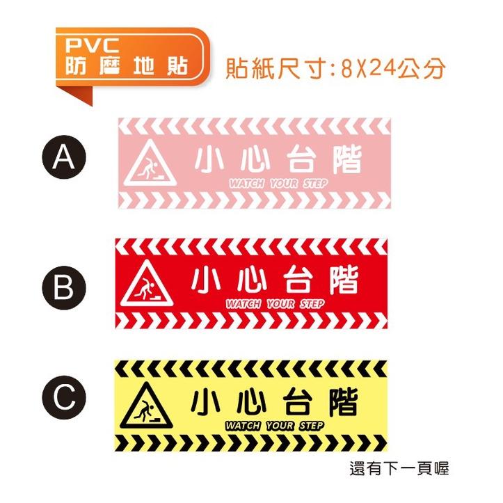 C02 地貼 - 小心台階 小心階梯 材質:PVC乳膠耐磨防水地貼 尺寸:8X24CM / 12X36CM (需要其他尺寸請聊聊,另外報價) 🌈地貼為PVC上地貼膜,比一般PVC霧膜貼紙具有更高的耐磨性且防滑,表面為霧面質感 小心斜坡地貼賣場 - https://shopee.tw/product/5808978/1393113287/ 大款小心台階地貼賣場 - https://shopee.tw/product/5808978/10926549083/ 🔴有現貨為當天寄出,現貨部分可聊聊詢問喔 🔴下標後才發單製作故需2-3天時間,如有現貨會下標後24小時寄出 ++每個螢幕顏色多少都會有些許有色差,請以收到的實物顏色為準++ 操作方式 🔴1)貼上之前請將欲貼面使用酒精擦拭乾淨(先將灰塵或汙點清除) 🔴2)如果非常擔有氣泡準備噴瓶加入水與洗碗精(泡泡樣即可) 🔴3)貼上時請墊上棉布,再刮除泡泡水,有氣泡就往四周推刮開,隔天就浮貼了 ⚠️ 特別注意⚠️ 特別注意⚠️ ""可以""黏貼的地方 - 貼紙任何光滑面都能黏貼,如玻璃/淺木紋桌面 / 平滑的牆面..... ""不可以""黏貼的地方 - 粗糙面如文化石,柏油路,未上漆的水泥牆 真的不確定請拍下黏貼面詢問我們喔, 避免購買了您不需要的產品,我們也不樂見