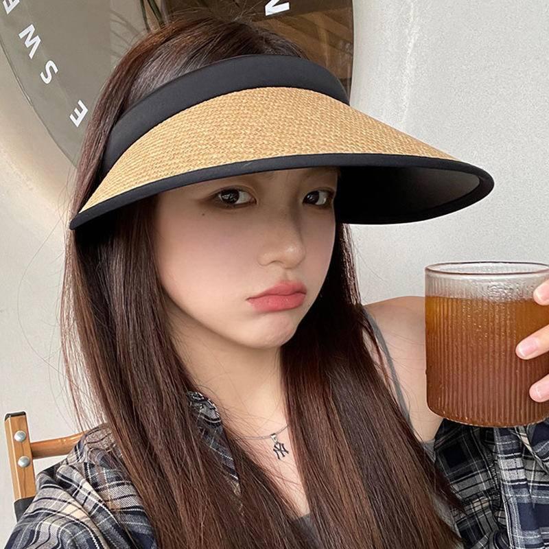 夏季帽子女草編UV防曬太陽帽防紫外線遮陽帽夏天騎車空頂大簷草帽