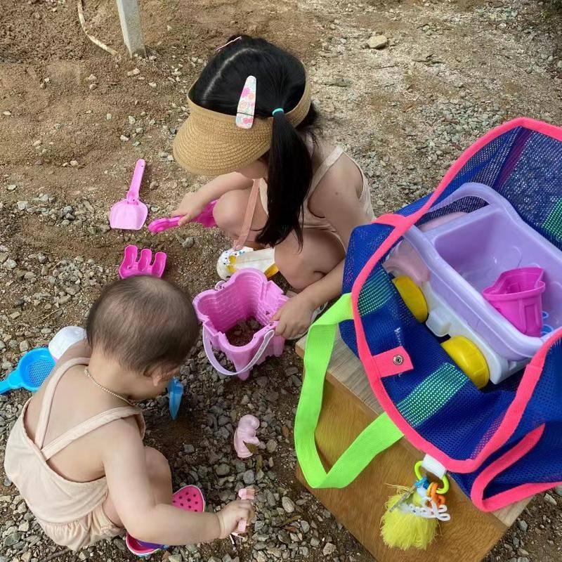 ins韓手提網眼沙灘包漏水洗澡包浴兜大容量旅行游泳收納袋玩具籃