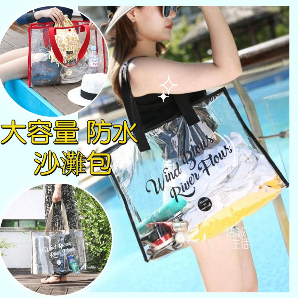 沙灘包 夏日防水大容量透明海邊沙灘包 全透明手提單肩包 手提包 防水袋 透明沙灘袋 防水包側背包肩背包 海灘包 果凍包