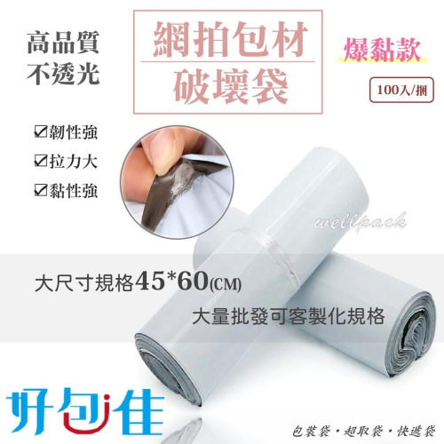 【好包佳】大尺寸賣場!台灣現貨 高品質破壞袋45*60 白色破壞袋 寄件袋 包裹袋 網拍包材 網拍出貨 網拍必備