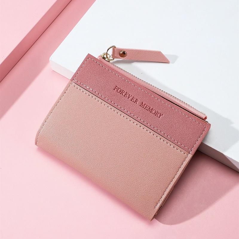 ❤ 韓 簡約 英文 配色 輕巧 拉鍊 零錢包 / 短夾 / 皮夾 - 粉色