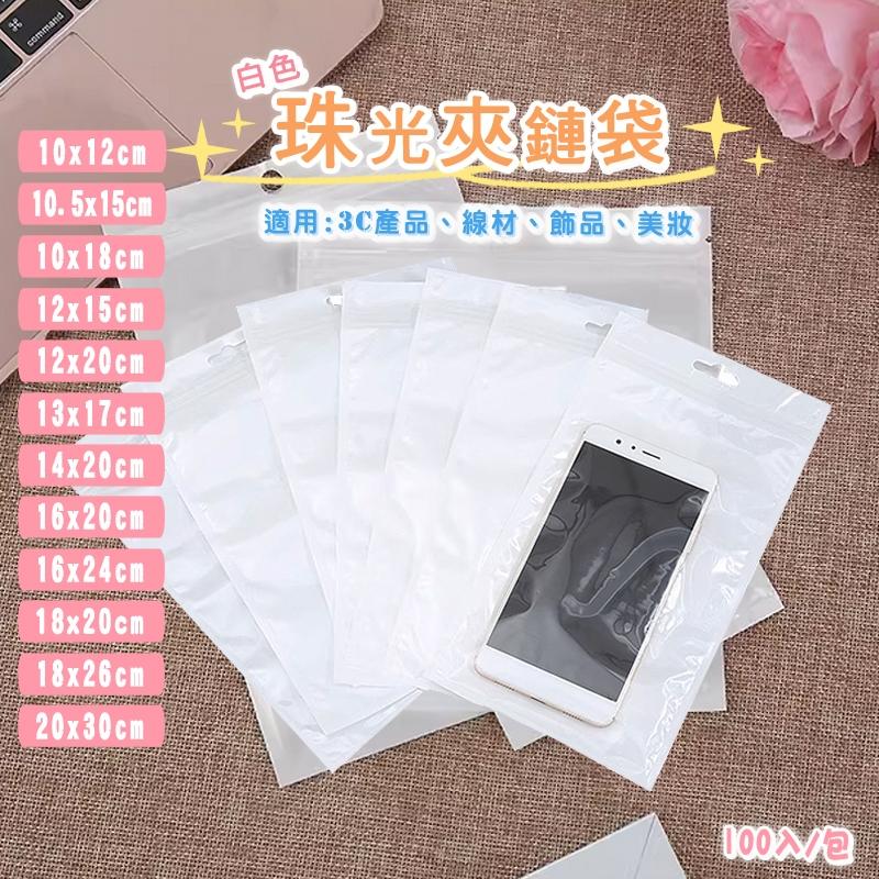 白色 珠光袋 夾鏈袋 手機殼 拉鍊袋 禮品袋 自封袋 耳環 飾品袋 珠光膜 包裝袋 - 100個/包 12絲