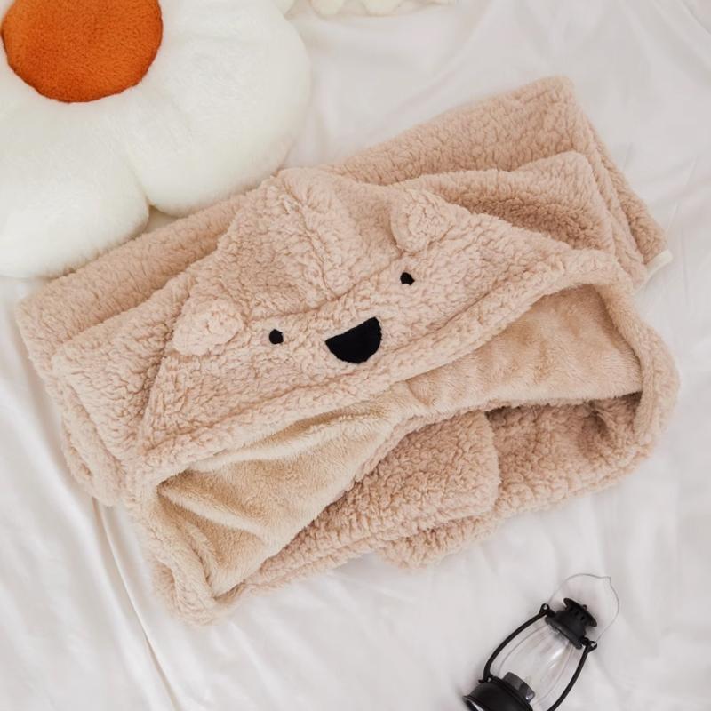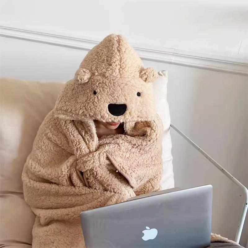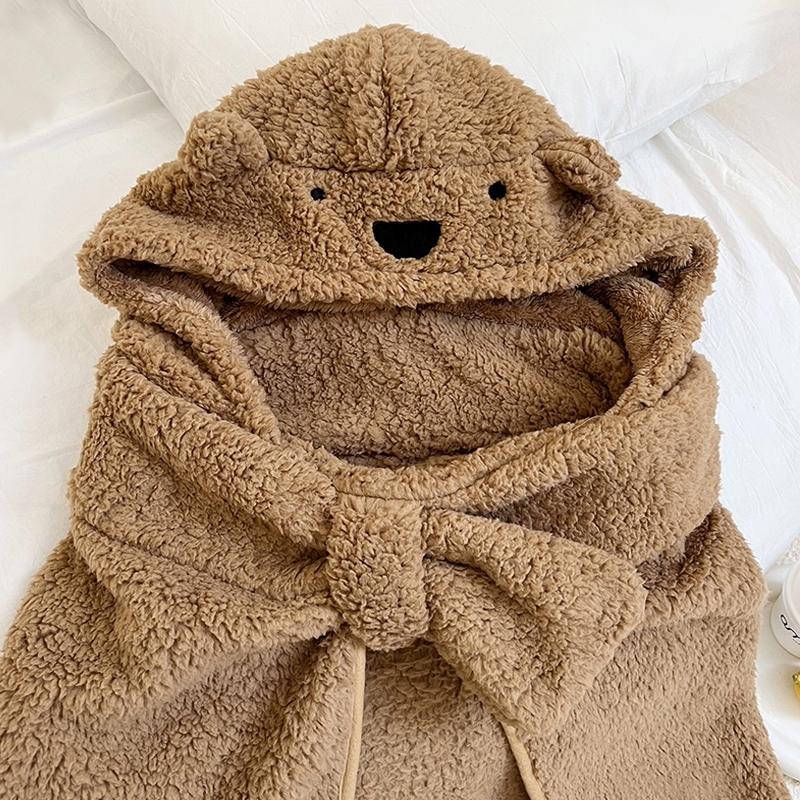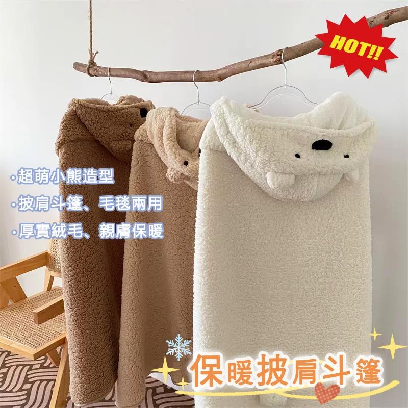 QQ 小熊 保暖 羊羔絨 披風 毛毯 寒流 加厚 毛絨 懶人毯 交換禮物 午睡毯 斗篷 連帽 披肩 毛毯 共三色