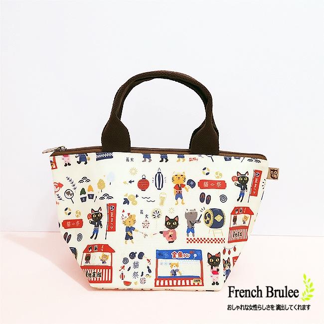 日本 花火 貓咪祭 拉鍊 野餐袋 無內裏 手提包 / 水餃包 / 防水包 - 淺黃色 Dolly club