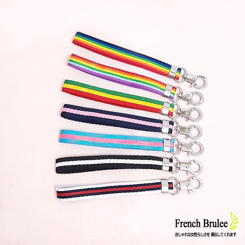 簡約 配色 條紋 包包 鑰匙扣 手機吊繩 金屬 問號 扣環 多用途 手腕帶 手拿帶 掛繩 - 7色