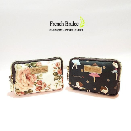 【Dolly club】芭蕾女孩 & 玫瑰花卉 防水 收納 拉鍊 零錢包 / 鑰匙包 - 黑色、米色