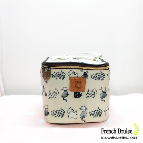 小花貓 兩用 立體 方型 防水 化妝包 / 手提包 (中) - 米色 Dolly club 快速出貨