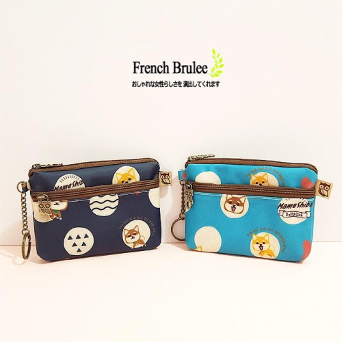 【Dolly Club】超Q 小柴犬 雙層 收納 防水 拉鍊 零錢包 附鑰匙圈 - 深藍色、淺藍色