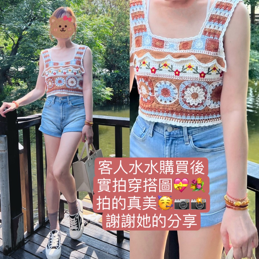 🌿💐☘️ 民族風針織鉤花刺繡鏤空背🌿💐☘️