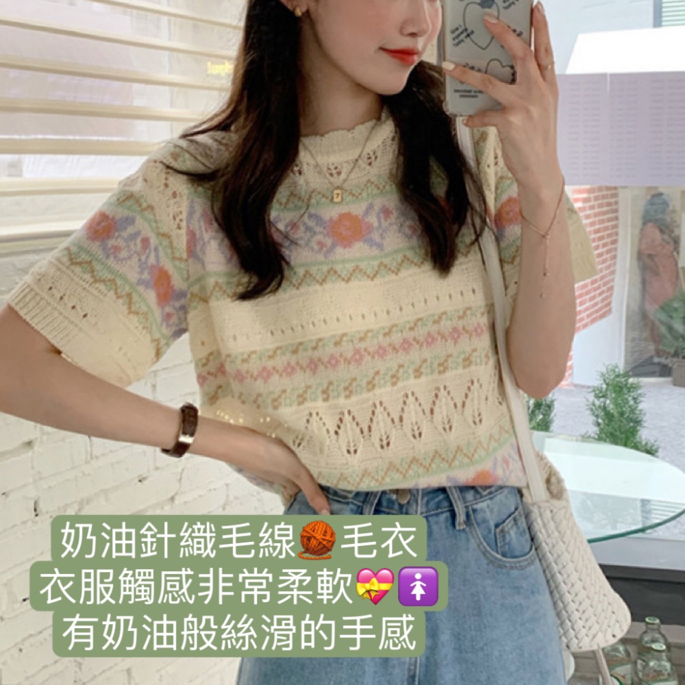 🌿奶油針織上衣 小清新花花刺繡針織毛衣🌿(#2269230)