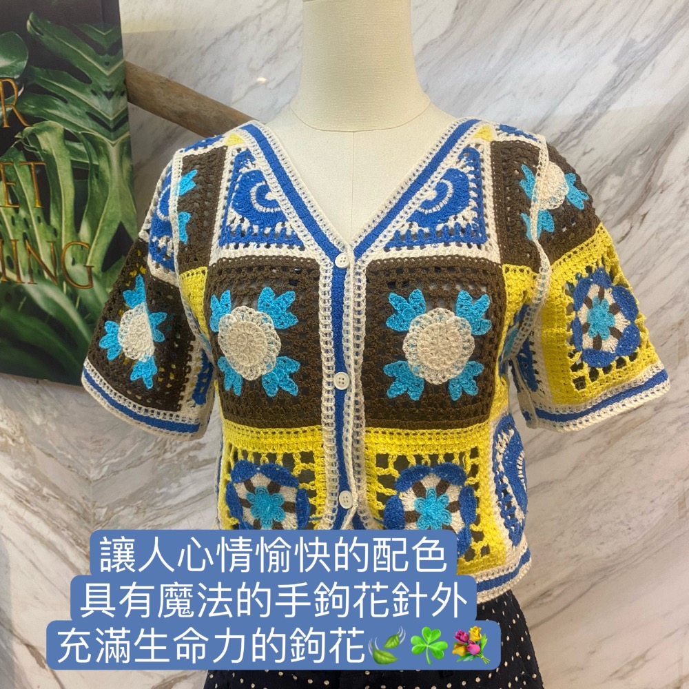 💮田園風鏤空鉤花設計針織衫小眾顯瘦短袖💮