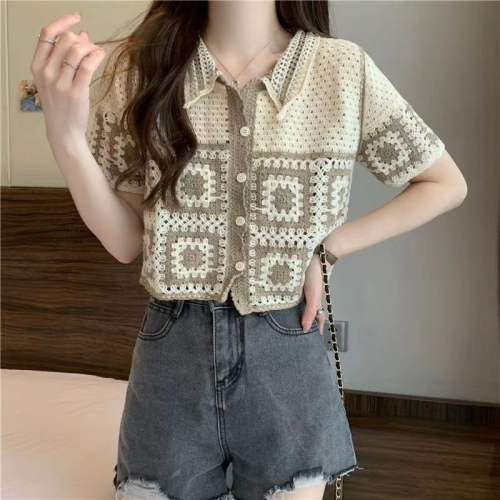 💐🌿 文青手鉤拼格針織上衣 🌿💐