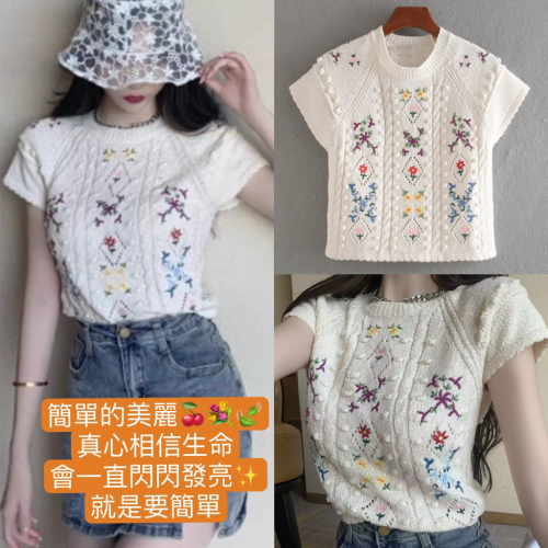 ☘️🍃💗時尚百搭甜美圓領刺繡花朵顯瘦短版短袖💗🍃☘️