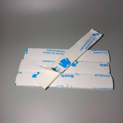 • 膠黏土膠揉成圓球狀,用力黏於選定區域,並將黏貼物品貼上即可。