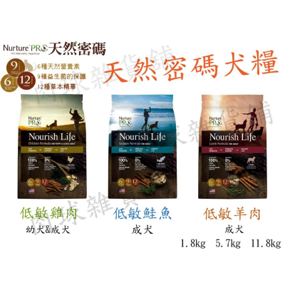 肉球雜貨舖 天然密碼 Nurture PRO 狗飼料 狗乾糧 低敏狗糧 低敏 犬糧 雞肉 羊肉 鮭魚