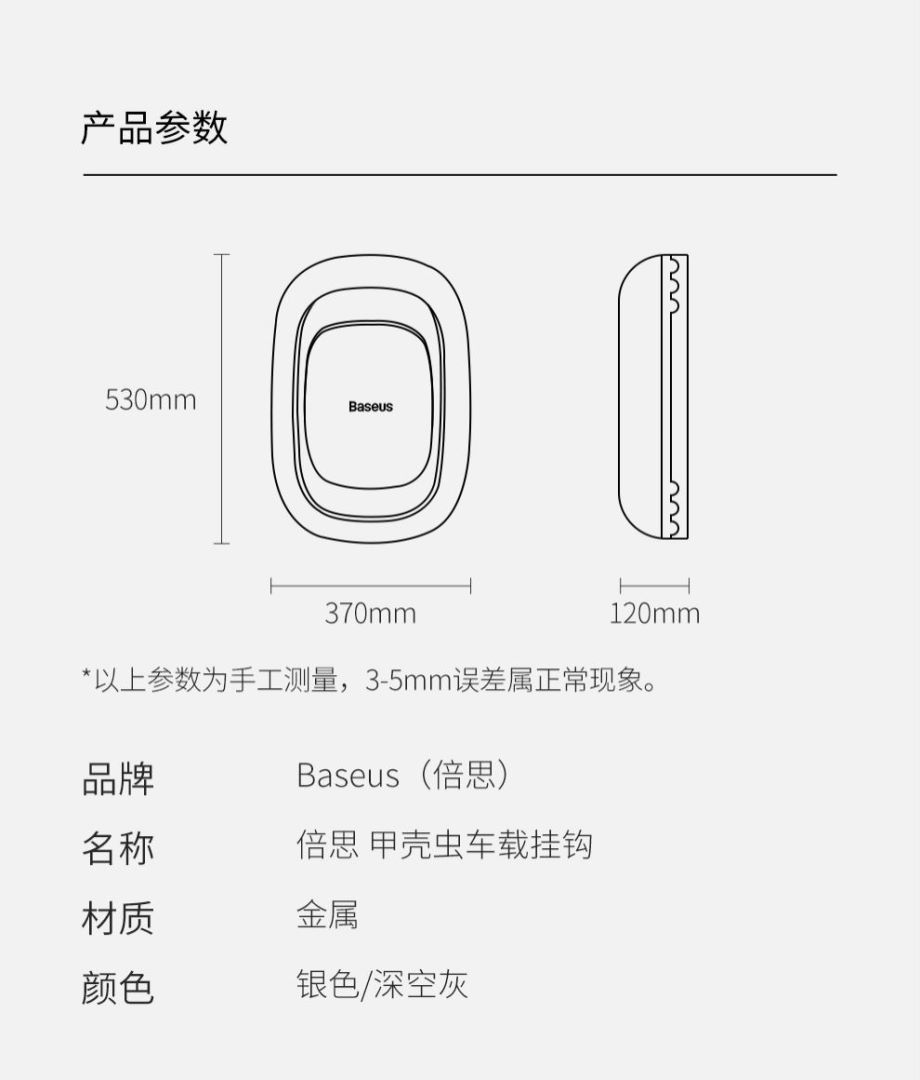 ⚠️甲殼蟲款倍思官方數據能承重2kg,但仍不建議掛湯湯水水,以免脫落時整個車內飾地板GG