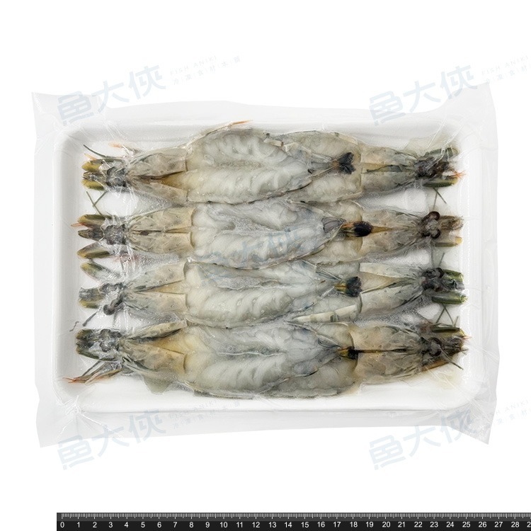 使用中規格系列的草蝦開背去除腸泥後再壓身裝盤真空,