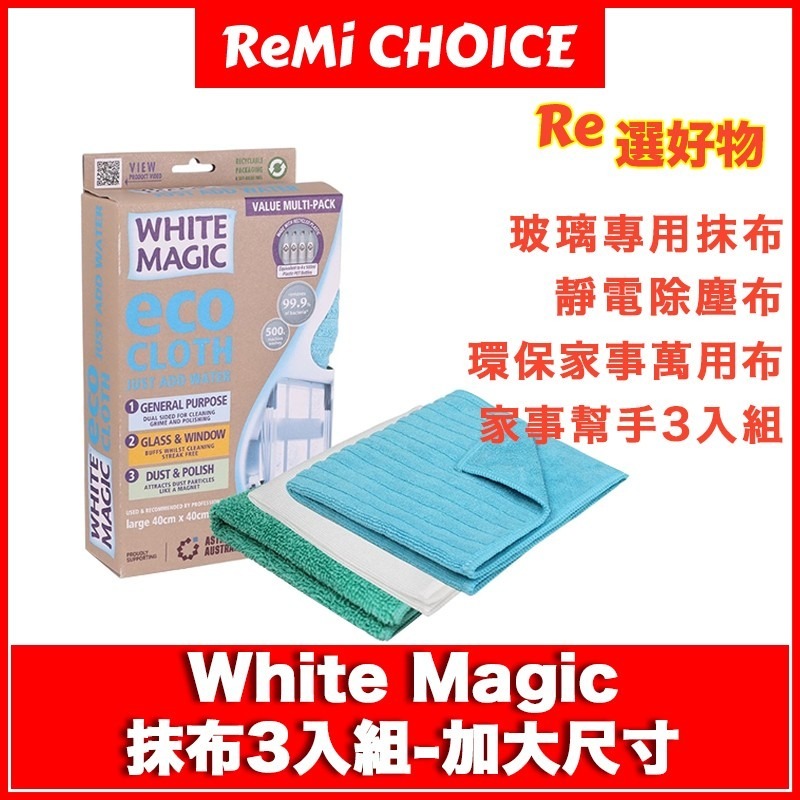 KDlive|澳洲商品|White Magic 抹布超值3入組(加大尺寸40*40)|玻璃專用|靜電除塵|吸水力強
