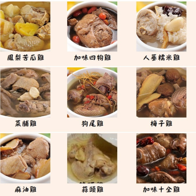 ※保存方式:雞湯、燉湯冷藏30天,冷凍6個月;甜品冷藏30天