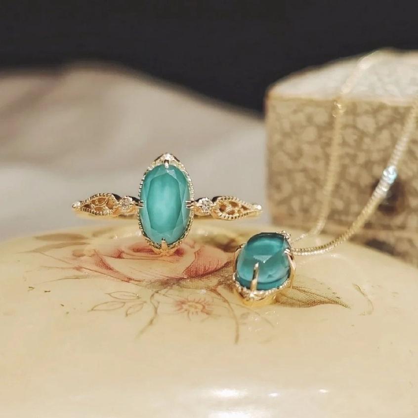 CEDONY | 日系氣質新款 夏季單品 天然綠松石拼石首飾套組 日本專櫃同款 | 項鍊 戒指 綠松石