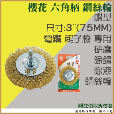 【雄爸五金】櫻花 六角柄 鋼絲輪 蝶型 CSU-3 鋼刷 鋼絲刷 五金 手工具組 配件 電動工具 快速出貨 含稅