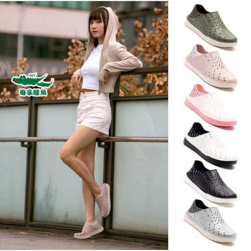 【母子鱷魚】軟式後踩鞋 男女鞋 EVA軟Q材質 透氣穿孔鞋面 鱷魚紋大底 減震 防臭 可手洗