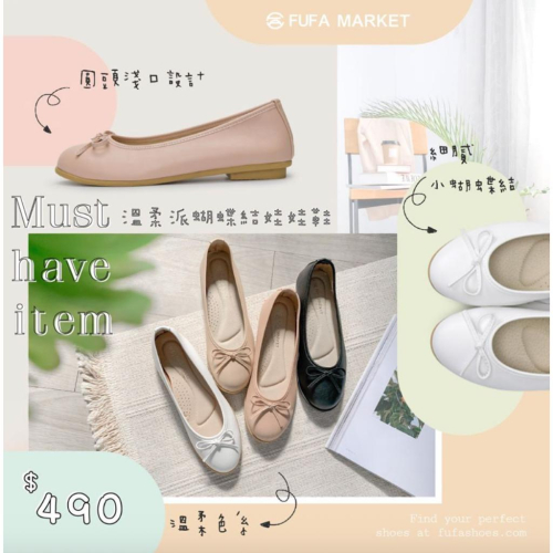 【FUFA 富發牌】溫柔派蝴蝶結娃娃鞋 黑/白/粉/杏 平底設計 好穿百搭 真皮乳膠鞋墊 久站久走必備!