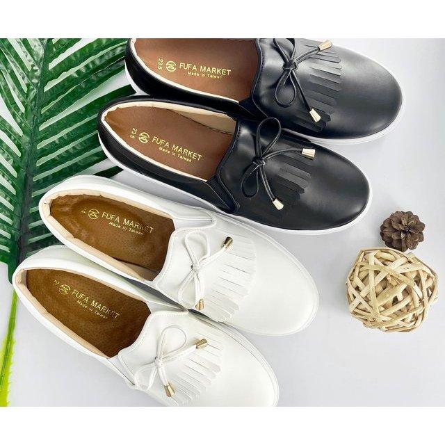 【FUFA 富發牌】 韓系淑女質感便鞋 黑/白 氣質流蘇 質感鞋面 透氣柔軟 真皮鞋墊 休閒鞋