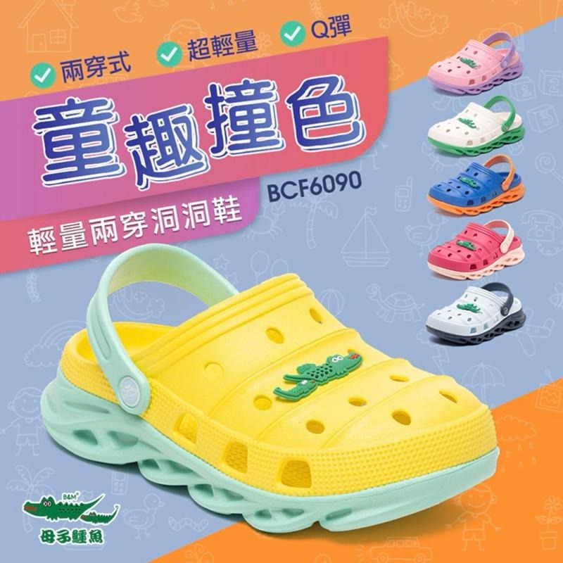 【母子鱷魚】童趣撞色輕量兩穿洞洞鞋 童鞋 Q彈 耐磨 透氣不悶熱 拖鞋 凉鞋 六色