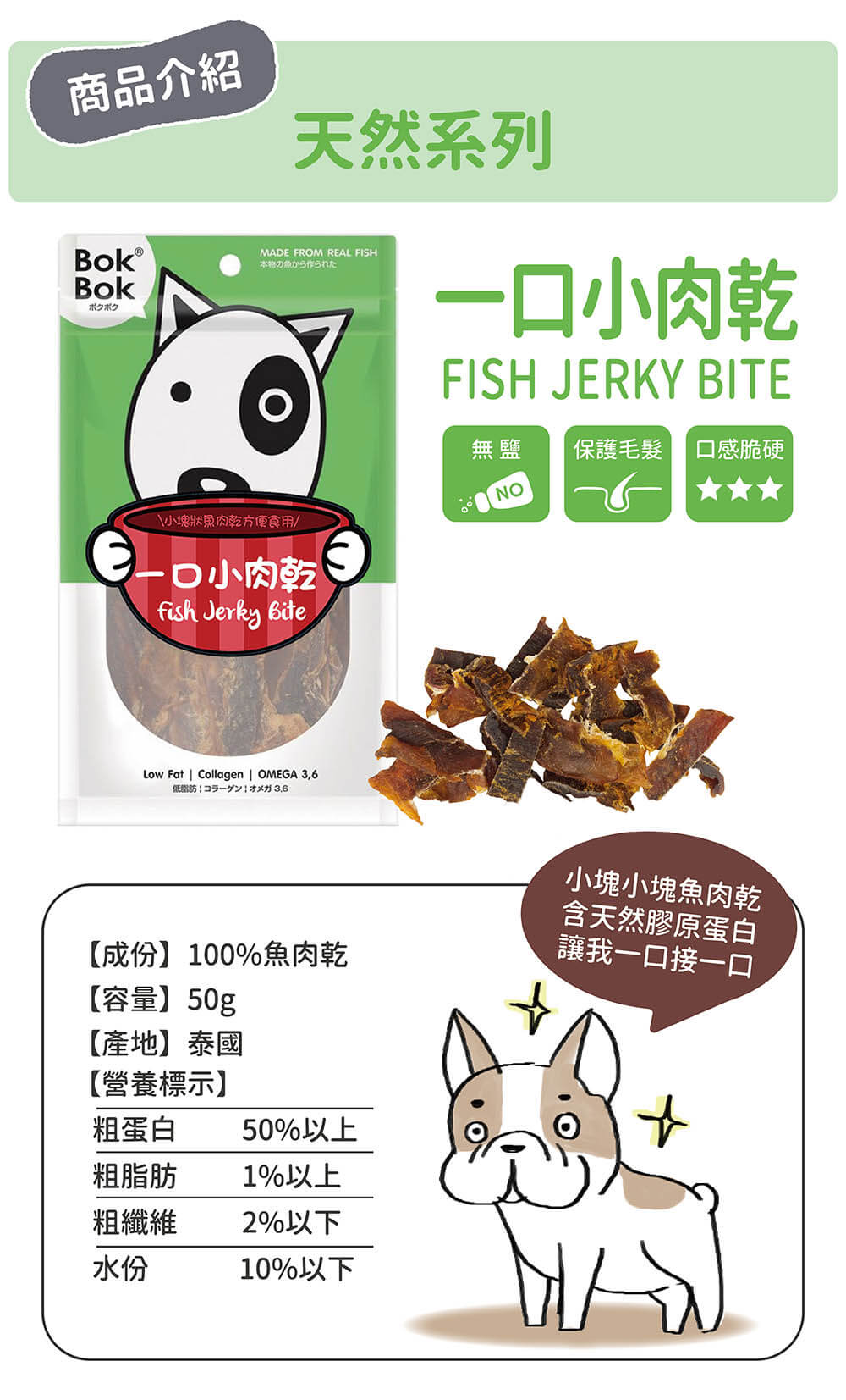 【天然健康狗狗零食】BokBok 鮮吃魚-一口小肉乾 50g