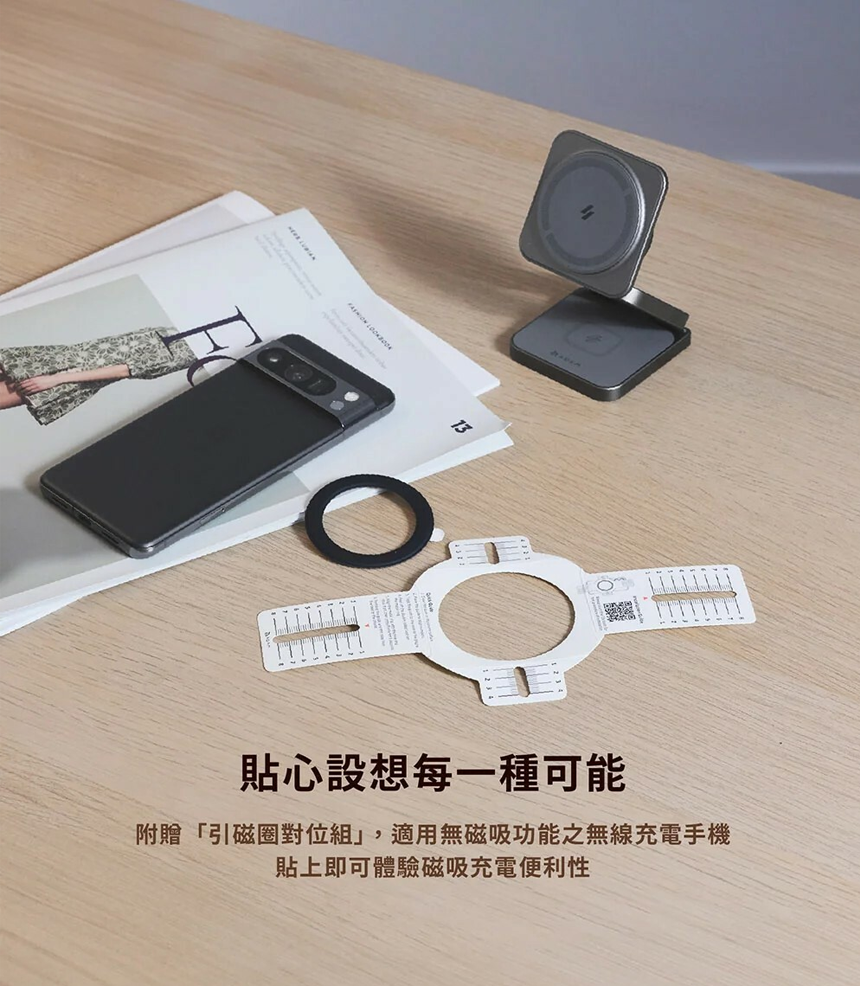 iPhone 12~16 全系列 MagSafe 適用,Android 裝置需搭配磁吸手機殼方可使用。