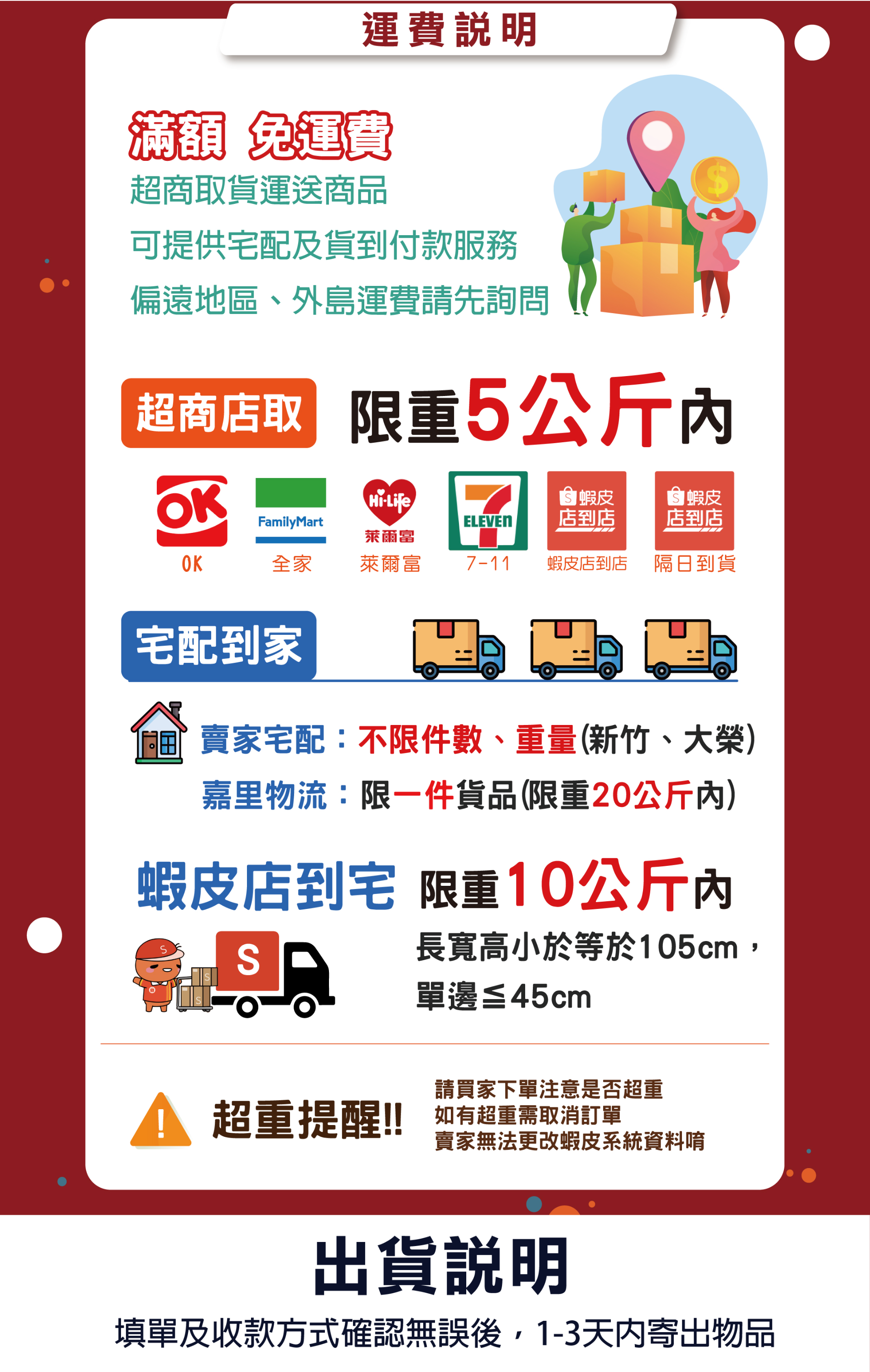 ※※※袋友下單時請注意,超商取貨/超商取貨付款,限重5公斤。