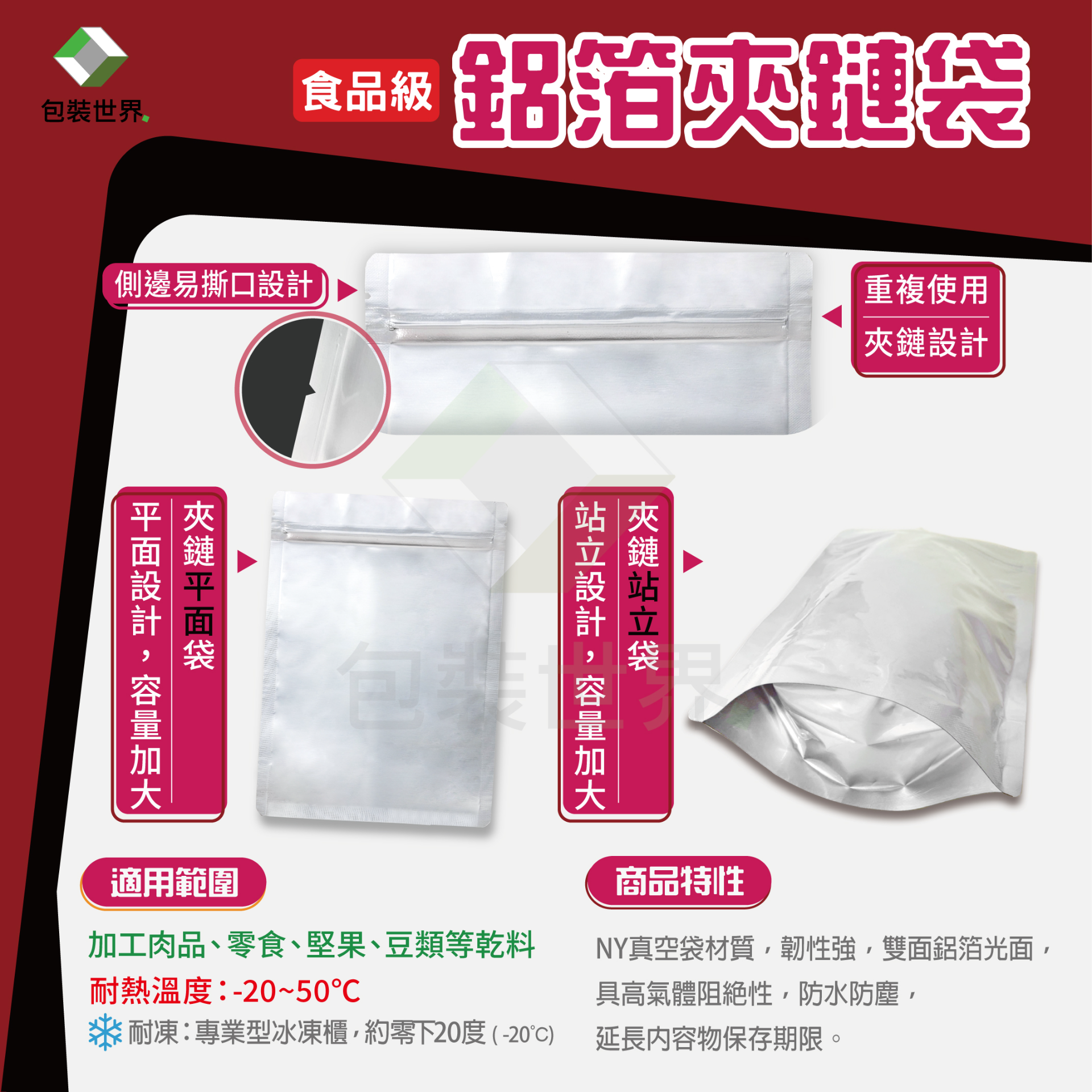 雙面鋁箔光面,韌性強,具高氣體阻絕性,防水防塵,延長內容物保存期限。