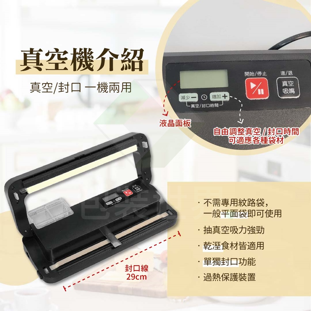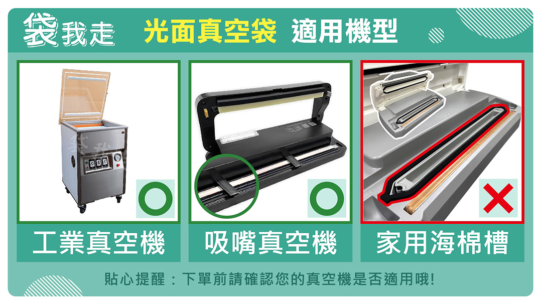 1.不需專用袋,使用一般真空袋、鋁箔袋