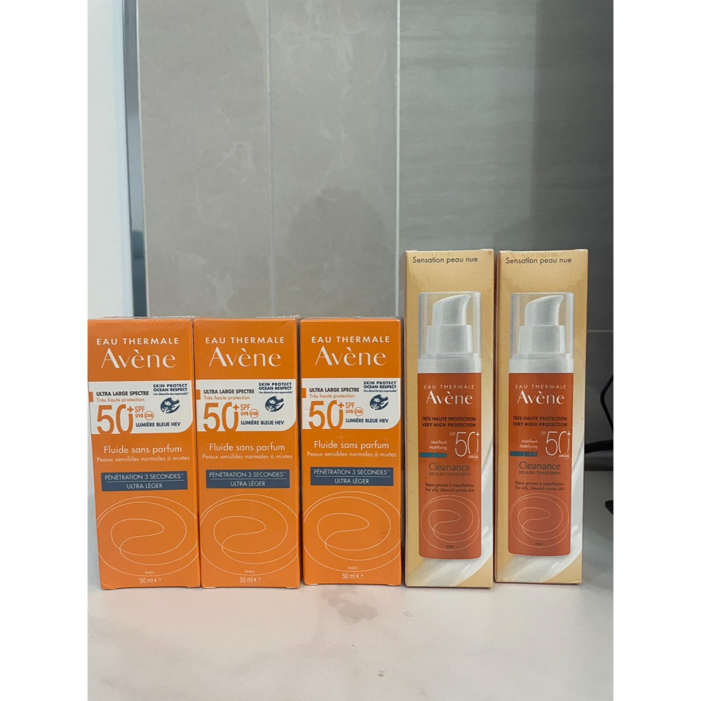 Avene 雅漾 全效極護控油清爽防曬液SPF50+ 50ml 雅漾全效極護控油清爽防曬液SPF50+質地清爽不油膩, 具不易致痘及低敏性,適合油性膚質及敏弱肌膚使用,不泛油光。 有效期限:參考規格標示 ------------------------------------------------------------------------------- Avene 雅漾 超能輕感防曬液(無香)SPF50+50ml 專利新穎光防曬技術 防水耐曬、海洋友善 混合肌適用 有效期限:參考規格標示 ------------------------------------------------------------------------------------ Avene 雅漾全效極護亮顏防曬乳30ml SPF50+ 無暇亮顏因子添加 一抹變色質地 有效期限:參考規格標示 ------------------------------------------------------------------------- Avene 雅漾 寶貝防曬液SPF50+(耐水配方)30M 有效期限:參考規格標示 ------------------------------------------------------------------------- Avene 雅漾全效極護輕透防曬液5ML3入組-共15ml(無香)SPF50+ 無封膜,無中文標,不介意再購買 有效期限:參考規格標示 ------------------------------------------------------------------------------- Avene 全效潤色防曬霜50MLSPF50+ 物理性礦物防曬 具明亮修飾膚色效果 不添加香料、酒精,觸感不黏膩 有效期限:參考規格標示