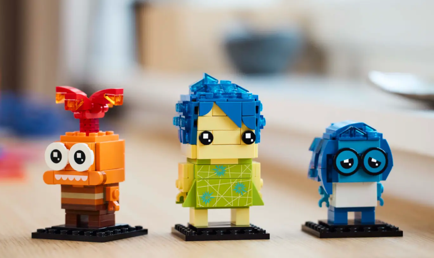 忠實還原的色彩-這些積木組成的玩偶採用鮮亮的藍色、黃色與橘色,讓《腦筋急轉彎 2》粉絲一眼就能認出他們