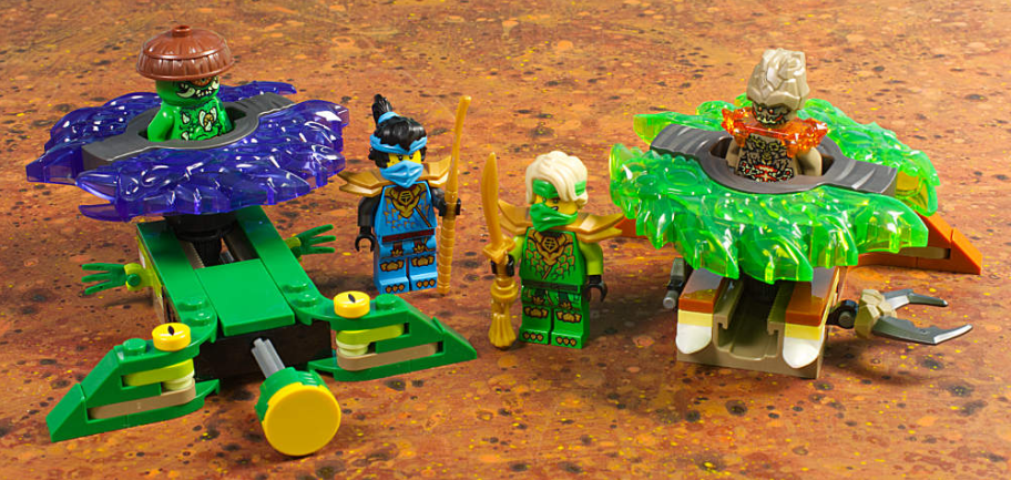 這兩款套裝均為小型戰鬥陀螺玩具,適合 6 歲及以上的兒童,可重現《旋風忍者:騰龍再起》(NINJAGO Dragons Rising) 電視節目第 4 季的場景。