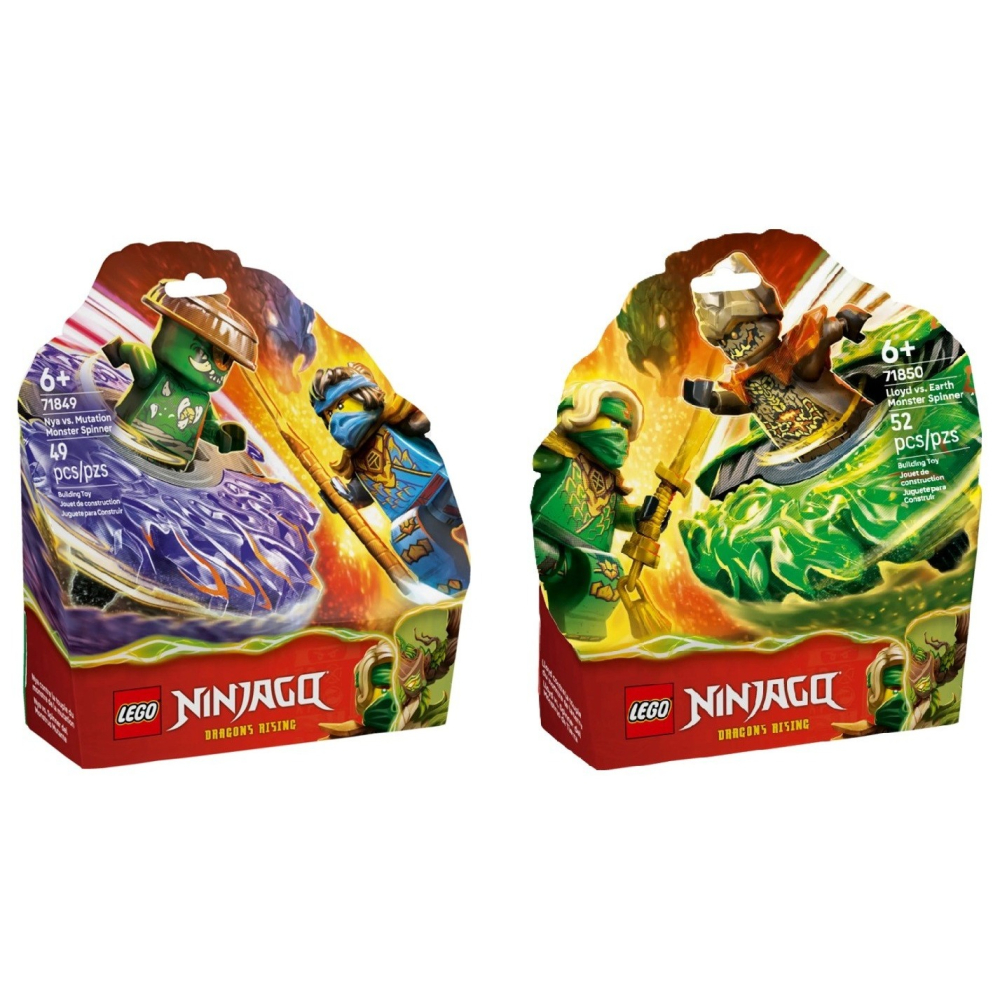 LEGO 71849 是「赤蘭大戰突變怪陀螺 (Nya vs. Mutation Monster Spinner)」,LEGO 71850 是「勞埃德大戰大地怪陀螺 (Lloyd vs. Earth Monster Spinner)」。這兩款套裝都屬於 LEGO 旋風忍者 (NINJAGO) 系列,並預計於 2026 年 1 月 1 日發售。