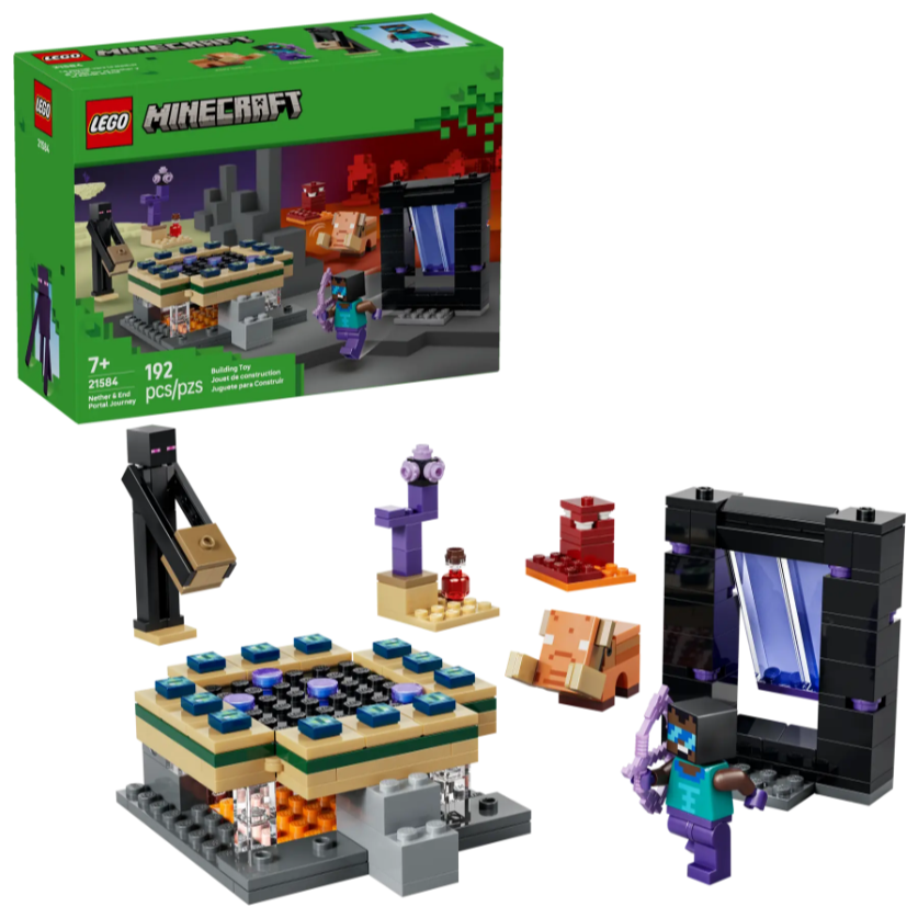 MINECRAFT® 傳送門玩具-暢玩 LEGO® Minecraft 地獄和終界傳送門之旅(21584),展開電玩主題冒險。此盒組是適合 7 歲以上孩子、男生和女生的 Minecraft 周邊玩具