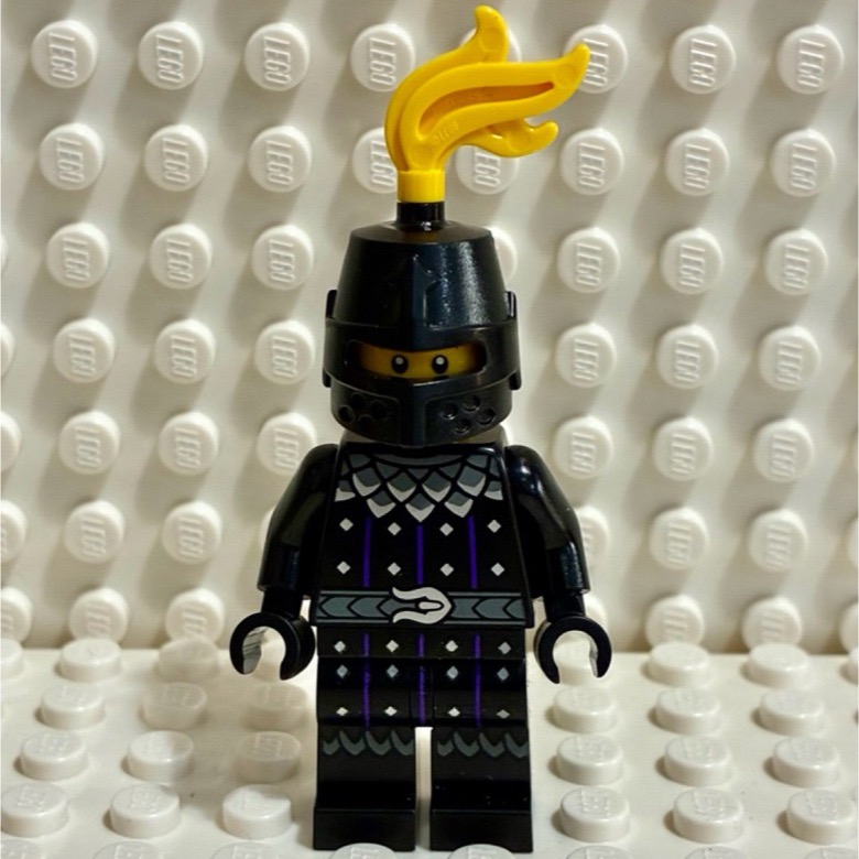 蛇騎士身著 全黑色的盔甲,這種純黑設計在樂高城堡系列中相對少見,展現出其作為反派或敵對勢力的冷酷感。