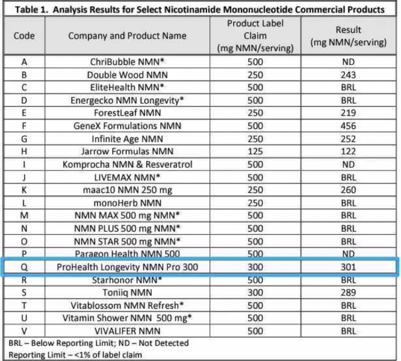 ❤️ProHealth為少數含有超過宣稱值的產品廠商 (tested by ChromaDex)