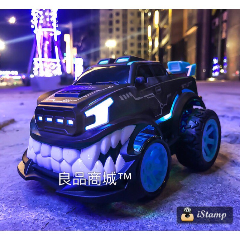 遙控車 特技車 大牙 夜光 聖誕禮物 兒童 大牙 夜間燈光玩具 可抬頭前進 原地旋轉 夜光